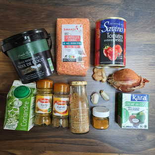 J'adore le dahl! C'est ton huile de coco dans le petit seau noir à gauche sur la photo?